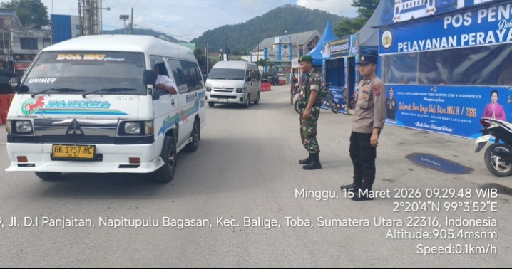 Benhillpos.com | BALIGE – Babinsa Koramil 17/Balige Kodim 0210/TU melaksanakan tugas di Pos Pengamanan (Pos Pam) Terpadu dalam rangka pengamanan Hari Raya Idul Fitri 1447 H tahun 2026.