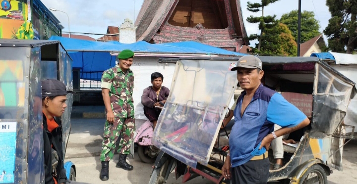 Benhillpos.com | BALIGE – Babinsa Koramil 17/Balige Kodim 0210/TU, Sertu H J Tambunan melaksanakan Komunikasi Sosial (Komsos) dengan warga Binaannya yang berprofesi sebagai tukang becak motor (Betor) bertempat di Bundaran DI. Panjaitan, Kelurahan Napitupulu Bagasan, Kecamatan.Balige, Kabupaten Toba Provinsi Sumatera Utara, Rabu (4/3/2026)