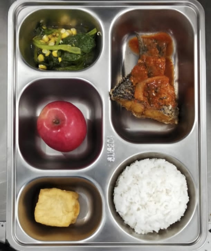 Sedangkan Menu yang disuguhkan oleh Dapur Horas Toba Yayasan Bisukma Bangun Bangsa di 8 sekolah di Kecamatan Balige yaitu Nasi putih, Mujahir saos asam manis, tahu goreng, rebus sawi hijau, jagung dan apel