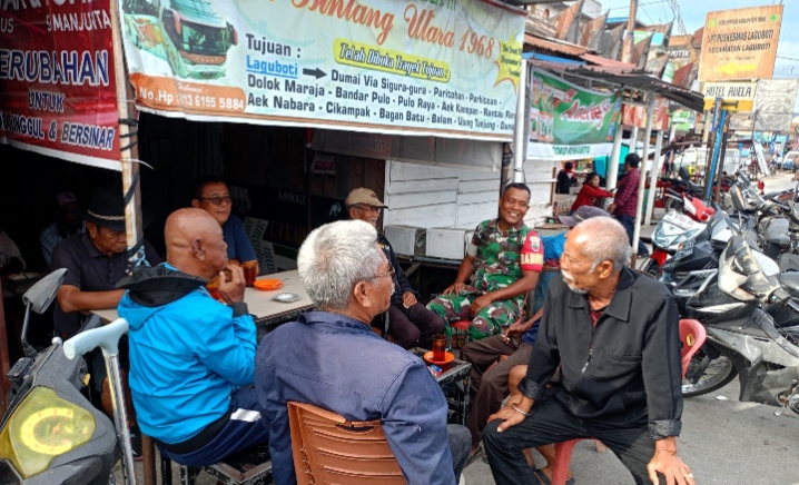 Kali ini Babinsa Koptu J Pangaribuan melaksanakan Komsos dengan warga binaannya, pasalnya warung kopi merupakan tempat berkumpul warga ketika melepas lelah setelah bekerja.