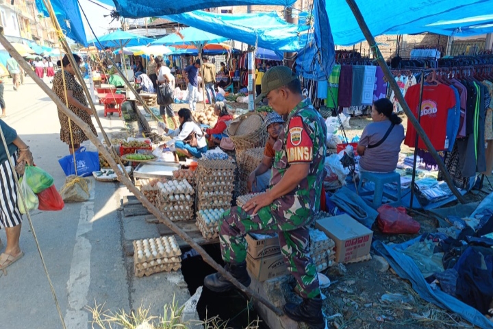 Benhillpos.com | Laguboti – Babinsa Koramil 16/Laguboti Kodim 0210/TU, Serda O Nainggolan melaksanakan pengecekan dan pemantauan harga kebutuhan pangan di pasar tradisional bertempat di Pasar Laguboti Kecamatan Laguboti Kabupaten Toba Provinsi Sumatera Utara, Kamis (12/3//2026)