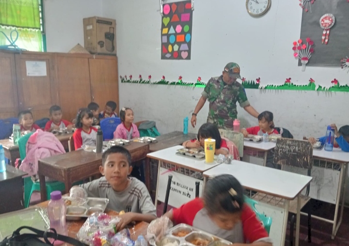 Dalam kegiatan tersebut, Babinsa memberikan motivasi kepada para siswa agar tetap semangat belajar serta menjaga pola makan sehat melalui program MBG yang digulirkan pemerintah daerah. Kegiatan berlangsung dengan penuh antusias dari para siswa dan tenaga pendidik.