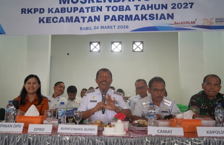 Hal ini disampaikan Wabup Toba, Audi Murphy O. Sitorus dalam bimbingan dan arahannya dalam Musyawarah Perencanaan Pembangunan (Musrenbang) Rencana Kerja Pemerintah Daerah (RKPD) Kabupaten Toba Tahun 2027 tingkat Kecamatan Parmaksian yang digelar di Aula Kantor Camat Parmaksian, Rabu (4/3/2026).