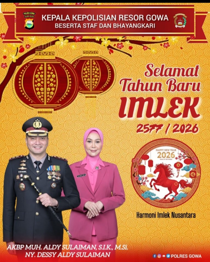 “Selamat Tahun Baru Imlek 2577/2026. Semoga tahun yang baru membawa kebahagiaan, kesehatan, keberkahan, serta kedamaian bagi kita semua,” ujar Kapolres Gowa dalam pesan resminya.