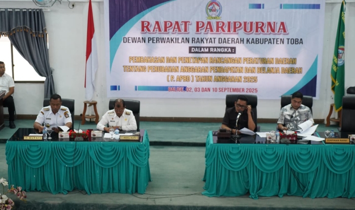 Benhillpos.com | TOBA – Setelah melakukan pembahasan dengan Tim Anggaran Pemerintah Daerah (TAPD) bersama Perangkat Daerah (PD) terhadap Rancangan Perubahan Anggaran Pendapatan dan Belanja Daerah Tahun Anggaran 2025 untuk masing-masing Perangkat Daerah, Badan Anggaran (Banggar) DPRD Toba melaporkan hasil pembahasan tersebut dalam Rapat Paripurna DPRD Kabupaten Toba pada Rabu (10/9/2025).