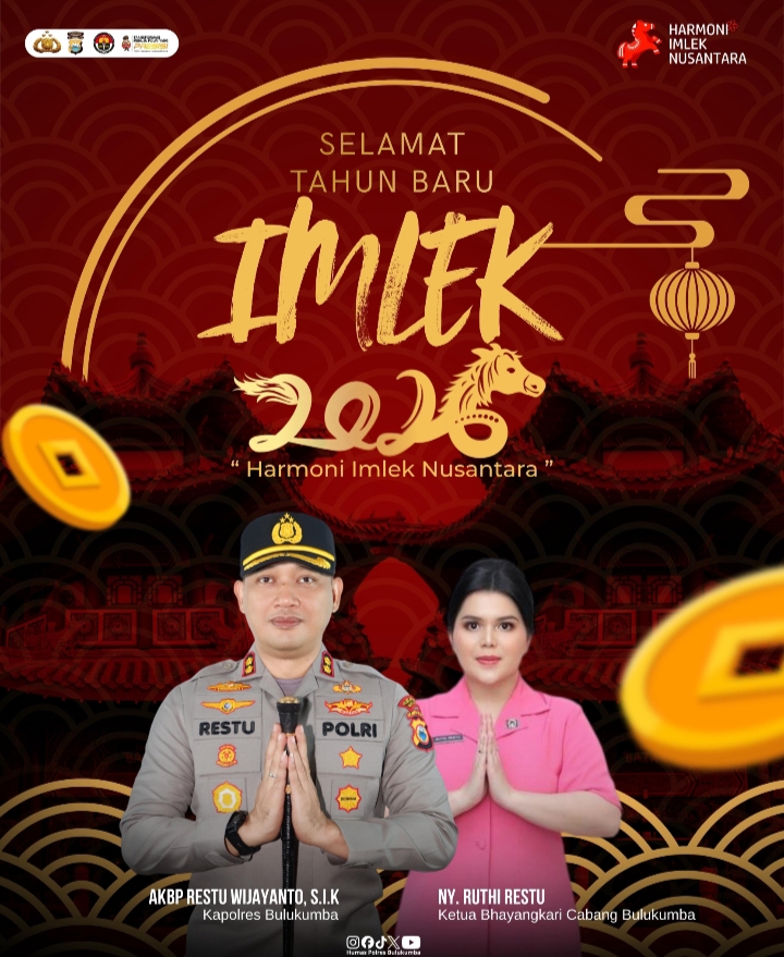 AKBP Restu Wijayanto berharap momentum Tahun Baru Imlek 2026 ini membawa keberkahan, kebahagiaan, serta kedamaian bagi seluruh masyarakat, khususnya di Kabupaten Bulukumba. Ia juga menegaskan komitmen Polres Bulukumba untuk terus menjaga keamanan dan ketertiban masyarakat agar perayaan Imlek berlangsung aman dan kondusif.