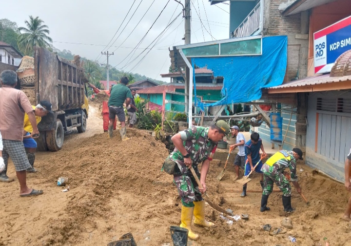 Dengan semangat gotong royong, personel Koramil 25/Pahae Jae bahu-membahu bersama masyarakat setempat membersihkan material lumpur, pasir, kayu dan lain sebagainya yang terbawa arus banjir hingga menutupi ruas jalan dan perumahan Penduduk. Kehadiran TNI di tengah masyarakat diharapkan dapat memberikan motivasi dan dukungan moral bagi warga agar tetap tabah dan segera bangkit dari dampak bencana.