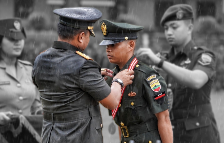 Sebanyak 2.312 prajurit baru resmi dilantik dan disumpah menyandang pangkat Prajurit Dua usai menempuh pendidikan selama dua bulan. Upacara tetap berlangsung khidmat meski diguyur hujan.