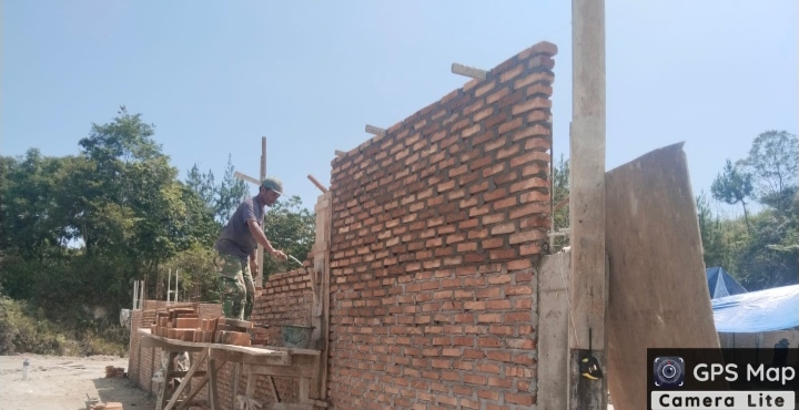 Danramil juga menambahkan saat ini kegiatan pekerjaan Rangka Atap, dan pemasangan Batu Bata