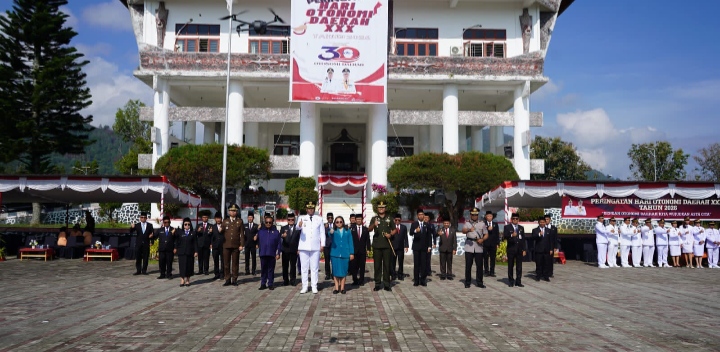 Benhillpos.com | TOBA – Pemerintah Kabupaten Toba menggelar Upacara Peringatan Hari Ulang Tahun ke-30 Otonomi Daerah Tingkat Kabupaten Toba pada Senin (27/4/2025) di halaman Kantor Bupati Toba.