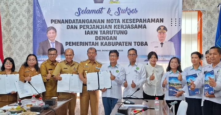 Benhillpos.com | TAPUT – Pemerintah Kabupaten Toba dan Institut Agama Kristen Negeri (IAKN) Tarutung menandatangani Nota Kesepahaman (MoU) dan Perjanjian Kerja Sama (PKS) di Kampus IAKN Tarutung, Kabupaten Tapanuli Utara, Selasa (4/11/2025).