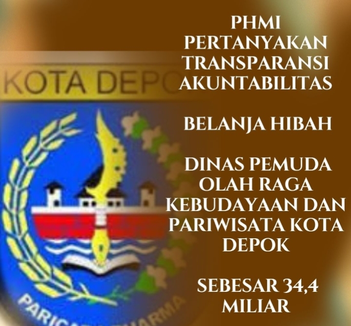 Benhillpos.com | Depok – Perisai Hukum Masyarakat Indonesia (PHMI) mempertanyakan Anggaran Belanja Hibah Kepada Badan, Lembaga, Ormas Berbadan Hukum Sebesar Rp.34.430.592.300 pada Dinas Pemuda, Olah Raga, Kebudayaan Dan Pariwisata Kota Depok.