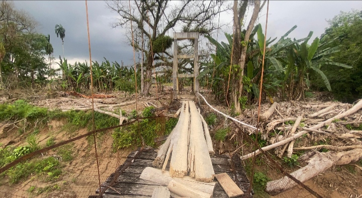 Kerusakan pada jembatan tersebut terjadi pada Juni 2024 akibat meningkatnya volume air sungai saat curah hujan tinggi serta kondisi konstruksi yang mulai rapuh sehingga mengganggu mobilitas warga dan aktivitas pertanian di wilayah tersebut.