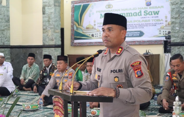 Dalam sambutannya, Kapolres Toba, AKBP Vinsensius Jimmy Parapaga, menyampaikan bahwa peringatan Maulid Nabi bukan sekadar seremonial, melainkan momentum untuk meneladani akhlak Rasulullah dalam kehidupan sehari-hari, khususnya bagi insan Bhayangkara.