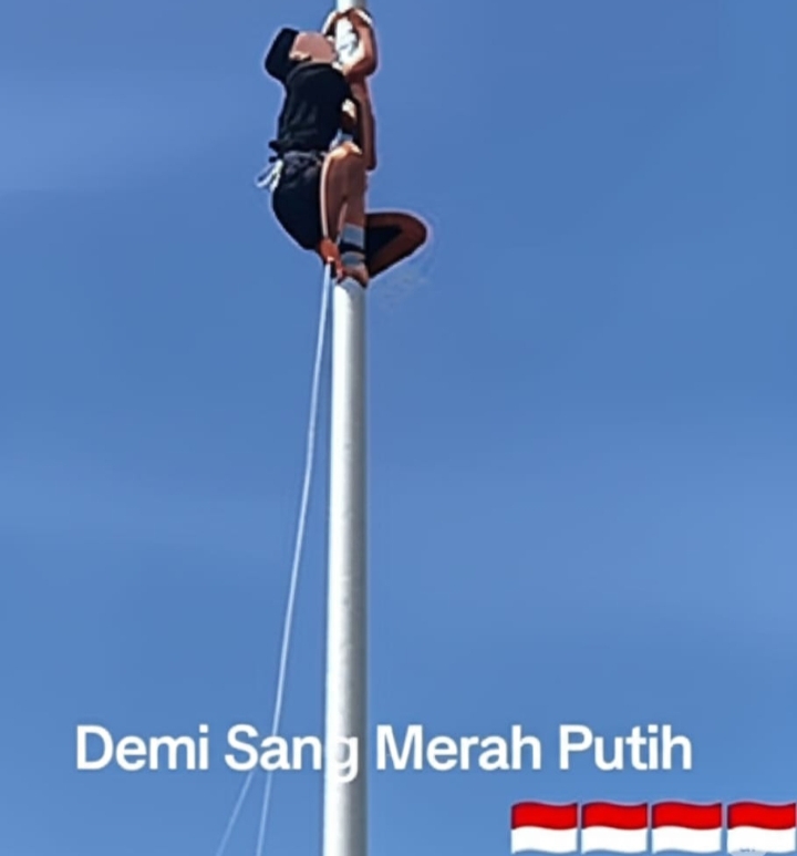 Di bawah, suasana menjadi hening. Anggota Paskibraka, pelatih, bahkan beberapa warga yang berolahraga ikut menyaksikan. Mata mereka terbelalak, kagum sekaligus cemas. Mereka melihat seorang pemuda berpakaian sederhana, dengan berbekal keberanian dan keikhlasan, memanjat tiang yang menjulang tinggi. Mahmud merasa angin berdesir di telinganya, pandangannya lurus ke atas, fokus pada bagian yang rusak.