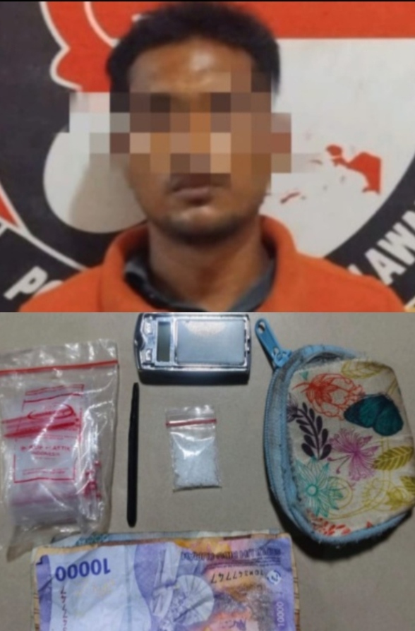 Tersangka yang berhasil diamankan berinisial F (32). Dari tangan tersangka, petugas menyita barang bukti berupa 1 plastik klip berisi sabu, 1 unit timbangan elektrik, 1 bungkus plastik klip kosong, 1 buah dompet emas, 1 buah pipet dengan ujung runcing, serta uang tunai sebesar Rp21.000,-.