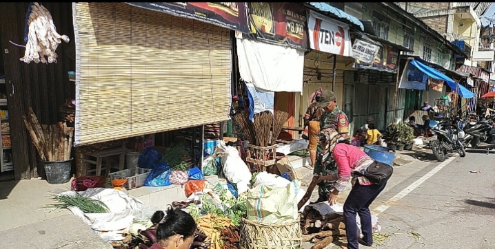 Benhillpos.com | Laguboti – Babinsa Koramil 16/Laguboti Kodim 0210/TU, Sertu F Siahaan melaksanakan pengecekan harga kebutuhan pangan di pasar tradisional bertempat di Pasar Laguboti Kecamatan Laguboti Kabupaten Toba Provinsi Sumatera Utara, Rabu (29/4/2026)