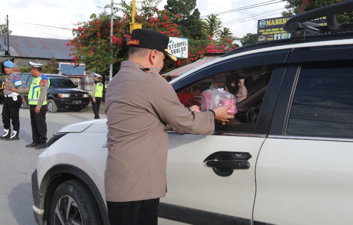 “Di bulan Ramadan yang penuh berkah ini, kami ingin berbagi dengan masyarakat, yang masih berada di perjalanan menjelang waktu berbuka puasa. Semoga dapat membantu mereka untuk sekadar berbuka sebelum sampai di rumah,” ujar Kapolres.