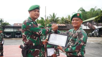 Benhillpos.com | TAPUT – Dandim 0210/TU, Letkol Kav Ronald Tampubolon, SH, M.Han, memberikan penghargaan kepada Prajurit…