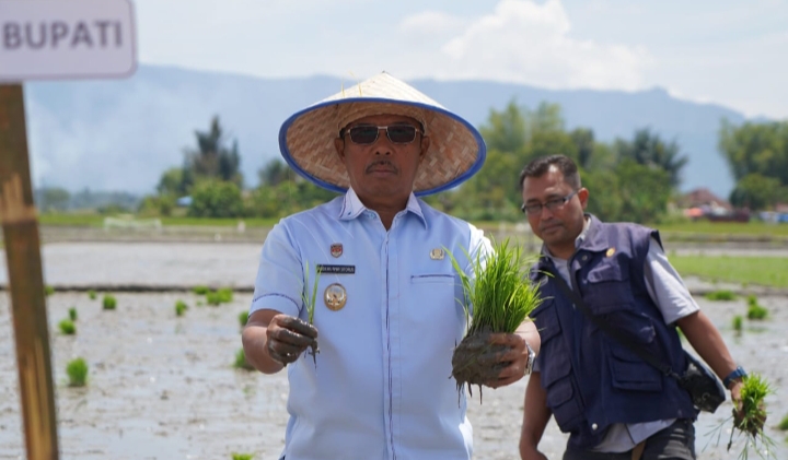 Benhillpos.com | LAGUBOTI – Wakil Bupati Toba Audi Murphy O. Sitorus mengikuti tanam padi serentak di Desa Ompu Raja Hatulian, Kecamatan Laguboti Kabupaten Toba Provinsi Sumatera Utara pada Kamis (9/10/2025).