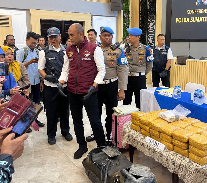 “Tersangka berperan sebagai kurir lintas provinsi. Barang ini berasal dari Malaysia, masuk melalui Aceh, dengan tujuan akhir pengiriman ke Tangerang,” ujar Andy dalam konferensi pers di Mapolda Sumut, Rabu (29/4).
