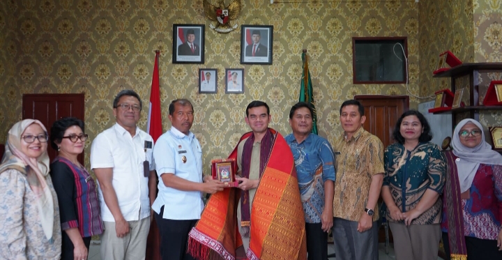 Benhillpos.com | TOBA – Wakil Bupati Toba, Audi Murphy O. Sitorus bersama Kepala Dinas Ketahanan Pangan Kabupaten Toba, Darwin Sianipar, menyambut kunjungan kerja Direktur Stabilisasi Pasokan dan Harga Pangan Badan Pangan Nasional (Bapanas), Bapak Maino Dwi Hartono, beserta rombongan di Kantor Wakil Bupati Toba, Kamis (09/10/2025).