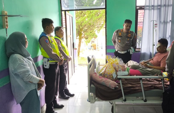 Anggota kita kemarin saat mengendarai Sp. motornya terjatuh, karena jalanan licin saat turun hujan gerimis sehingga menyebabkan luka – luka ringan ( Laka lantas tunggal ) dan menurut diagnosa dokter perlu istirahat beberapa hari, terang Kasat Lantas Iptu Lambok D. Sihotang seperti yang di sampaikan kan Kasi Humas melalui Kasubsi Penmas Aiptu Widodo.